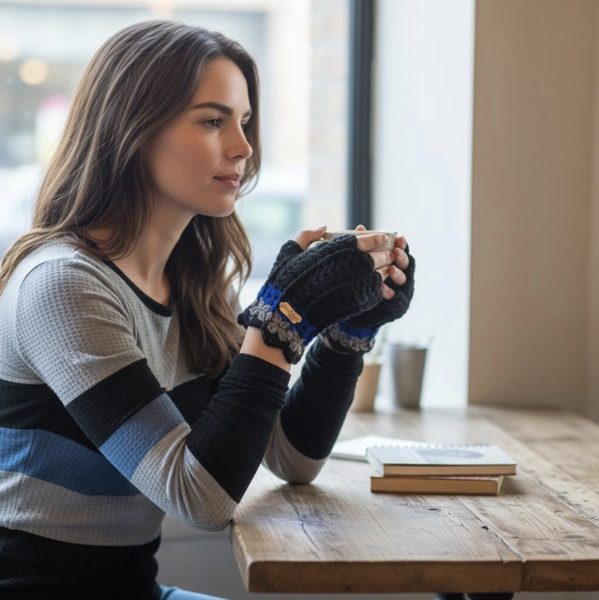 Ces mitaines FeniCrochet allient un design graphique tricolore à une texture crochetée main dense et moelleuse, offrant une barrière efficace contre le froid. Déclinaisons variées (Marron & Blanc, Tricolore). Laine mélangée ou doublure polaire. Sur commande dans tes teintes. Simple 27€ / Polaire 32€. Fabrication artisanale en Ardèche.